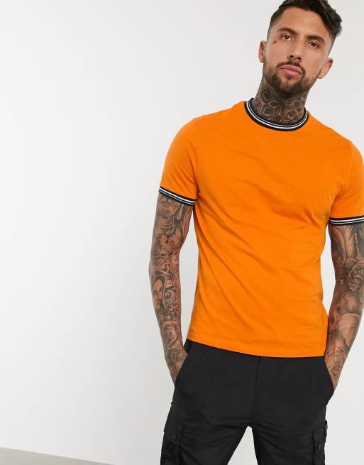 ASOS DESIGN – T-Shirt in Orange mit Zierstreifen