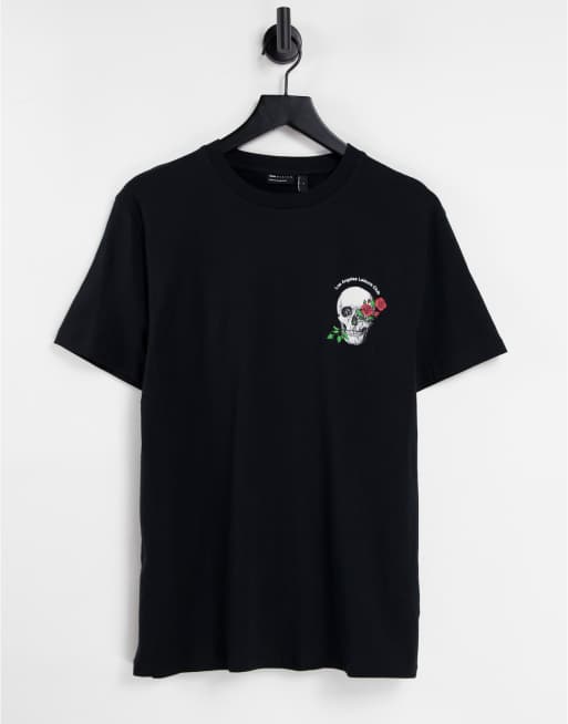 ASOS DESIGN – T-Shirt in Schwarz mit Totenkopf-Print auf der Brust