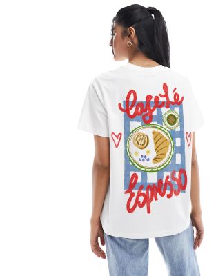ASOS DESIGN – T-Shirt in Weiß mit normalem Schnitt und „Cafe Lé Espresso“-Grafikprint auf dem Rücken