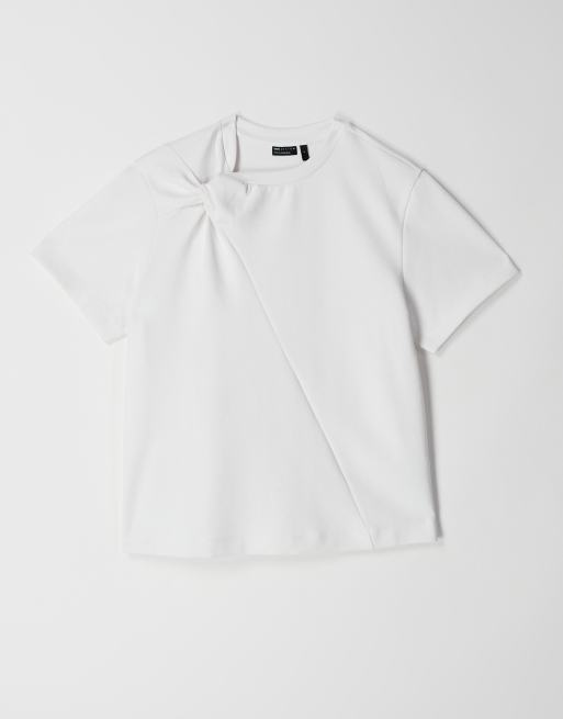 ASOS DESIGN – T-Shirt in Weiß mit verdrehter Schulterpartie