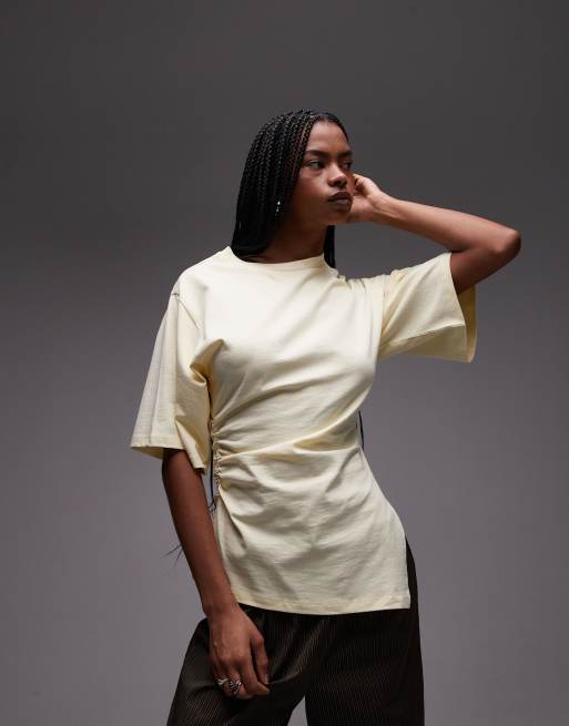 ASOS DESIGN – T-Shirt in Zitronengelb mit gerafften Seiten
