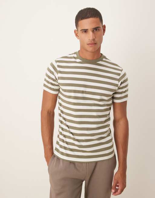 ASOS DESIGN – T-Shirt mit Streifen in Oliv und Ecru