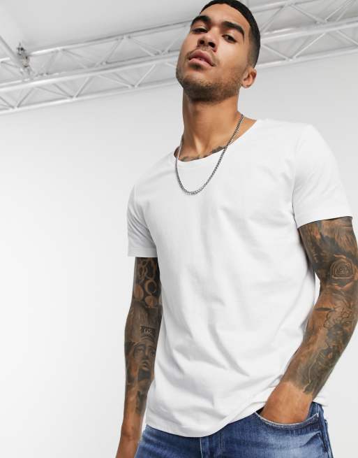 ASOS DESIGN – T-Shirt mit U-Ausschnitt in Weiß