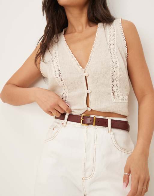 ASOS DESIGN – Taillen- und Hüftgürtel in Burgunderrot mit eckiger Schnalle