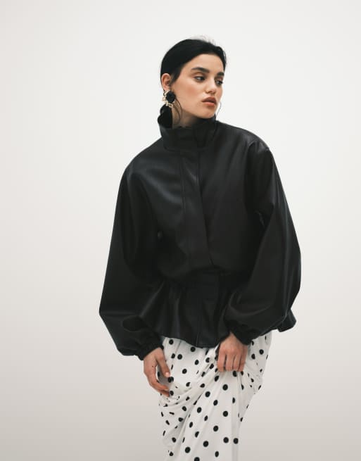 ASOS DESIGN – Taillierte Jacke in Lederoptik in Burgunderrot mit niedriger Taille
