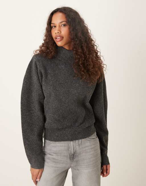 ASOS DESIGN – Taillierter Pullover in Anthrazit mit weiten Ärmeln und Schulterpolstern