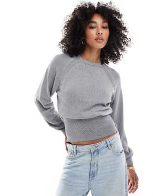 ASOS DESIGN – Taillierter Strickpullover in Grau meliert mit Ballonärmeln