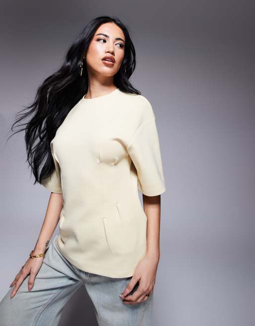 ASOS DESIGN – Tailliertes T-Shirt aus Interlock-Stoff in Buttermilch