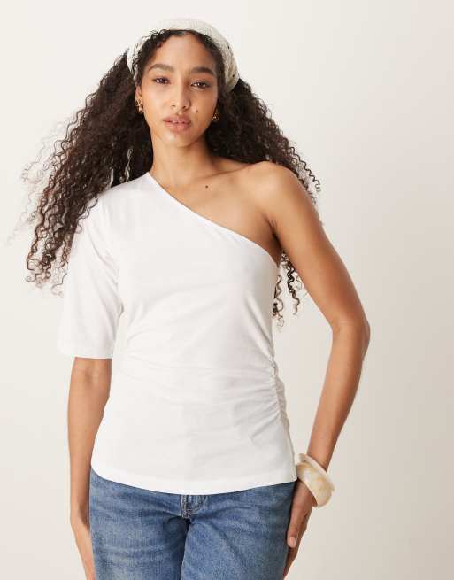 ASOS DESIGN – Tailliertes T-Shirt in Weiß mit asymmetrischem Schnitt