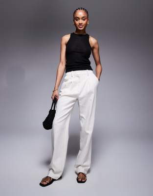 ASOS DESIGN Tall – Elegante, gerade geschnittene Hose in Creme mit Streifen und Bundfalten