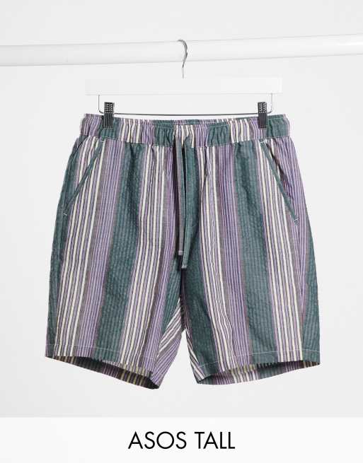 ASOS DESIGN Tall – Kurze Shorts in Lila gestreift mit ausgewaschener Optik