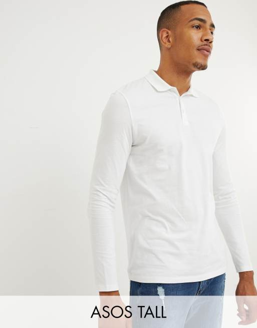 ASOS DESIGN Tall long sleeve jersey polo in white