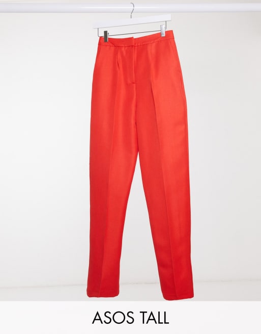 ASOS DESIGN Tall – Schmal geschnittene, verkürzte Dad-Anzughose in Rot