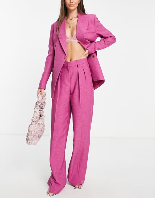 ASOS DESIGN Tall – Schmaler Anzugblazer in Rosa mit betonter Schulterpartie und Kreuzschraffur