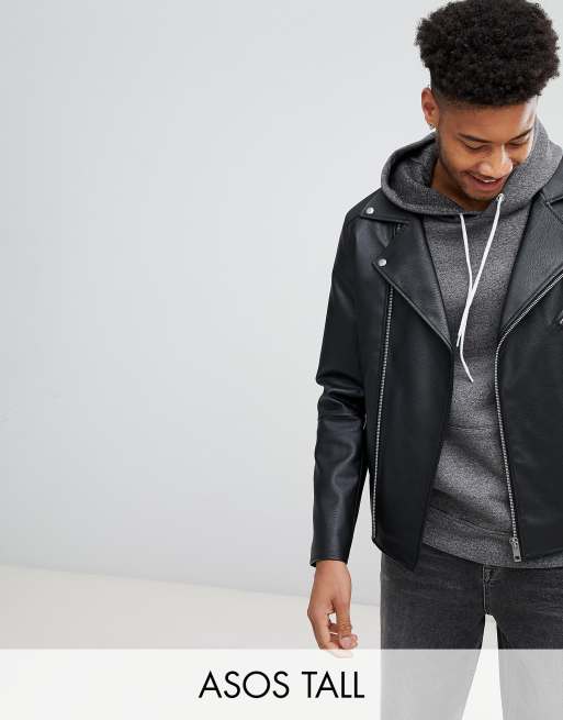 ASOS DESIGN Tall – Schwarze Bikerjacke in Lederoptik