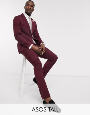 ASOS DESIGN Tall – Wedding – Eng geschnittener Anzug in Weinrot