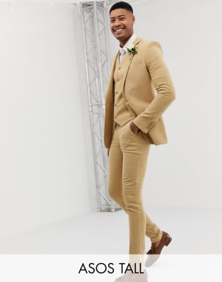 ASOS DESIGN Tall Wedding – Sehr enger Anzug, kleinkariert in Stone