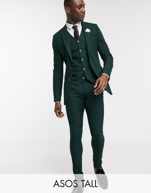 ASOS DESIGN Tall – Wedding – Super eng geschnittene Anzug in Tannengrün mit Mikrostruktur