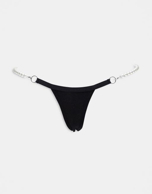 ASOS DESIGN – Tanga in Schwarz mit Perlendetails