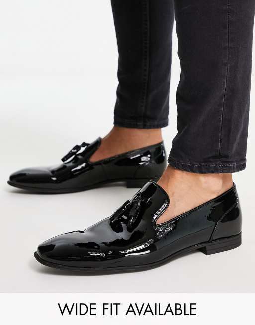 ASOS DESIGN – Tasselloafer in schwarzer Lackoptik