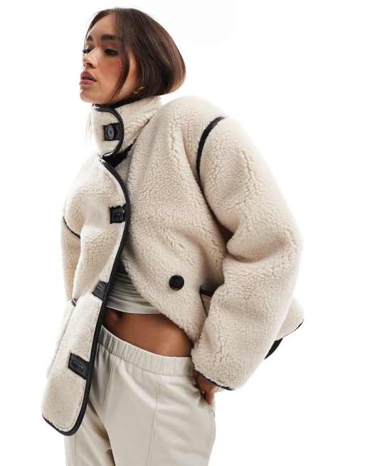 ASOS DESIGN – Teddy-Jacke in Hellbeige mit Stehkragen