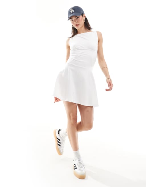 ASOS Design – Tenniskleid in Elfenbein mit tiefem Saum