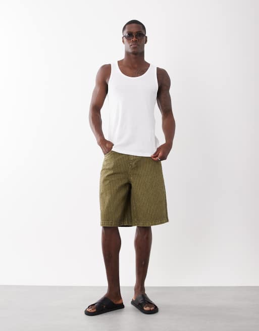 ASOS DESIGN – Texturierte Bermuda-Jeansjorts in verwaschenem Khaki