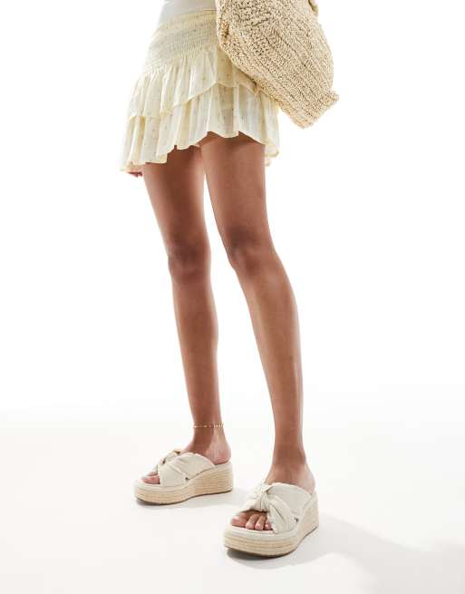 ASOS DESIGN – Thoughtful – Mules in Natur mit Knotendetail und flacher Plateausohle