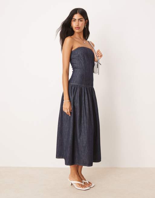 ASOS DESIGN – Trägerloses Maxi-Jeanskleid in indigoblauer Rinse-Waschung mit tiefer Taille