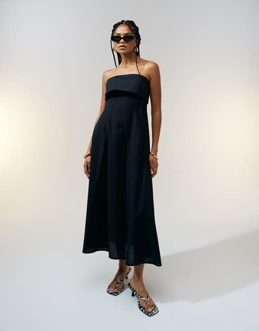 ASOS DESIGN – Trägerloses Midikleid in Schwarz mit Umschlagdetail