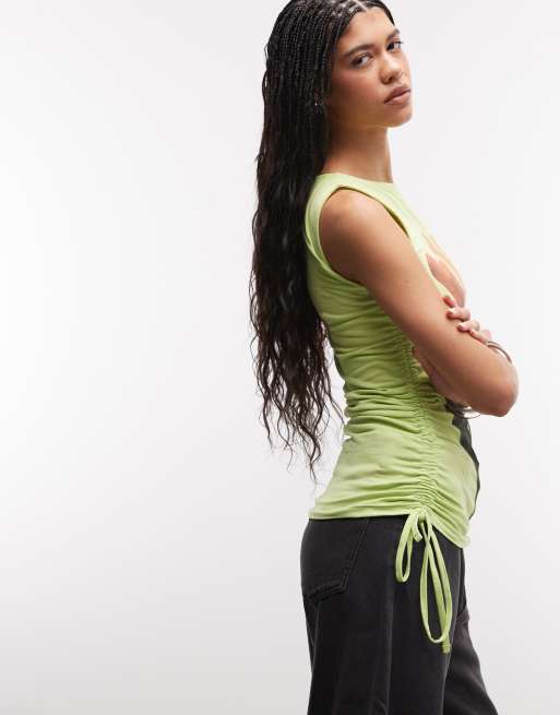 ASOS DESIGN – Trägertop in Blassgelb mit U-Boot-Ausschnitt und Aquarell-Blumenmuster