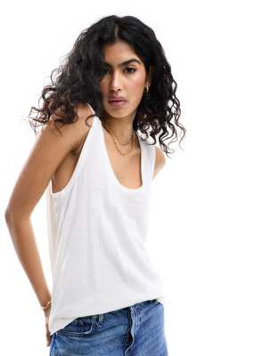 ASOS DESIGN – Trägertop in Leinenoptik in Cremeweiß mit U-Ausschnitt