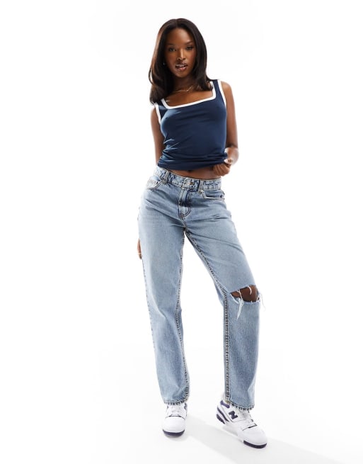 ASOS DESIGN – Trägertop mit eckigem Ausschnitt und farblich abgesetzter Einfassung