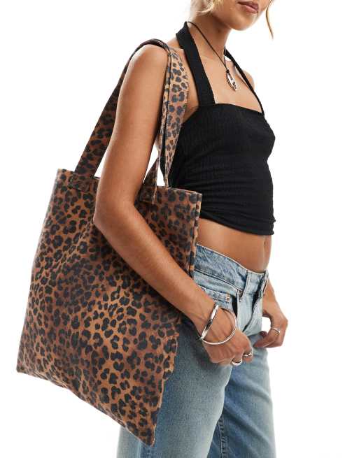 ASOS DESIGN – Tragetasche aus Canvas mit Leopardenmuster