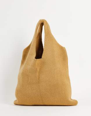 ASOS DESIGN – Tragetasche aus Strick in Beige