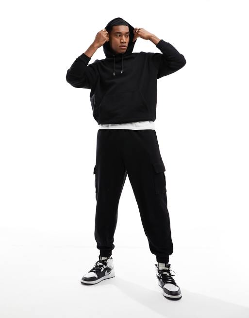 ASOS DESIGN – Trainingsanzug in Schwarz mit Oversize-Kapuzenpullover und lässig geschnittener Jogginghose