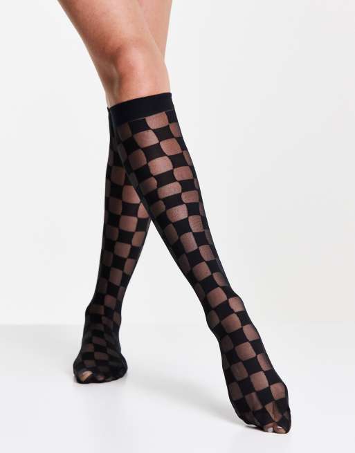 ASOS DESIGN – Transparente, knöchelhohe Socken in Schwarz mit Schachbrettmuster