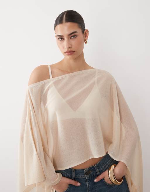 ASOS DESIGN – Transparenter Poncho aus Feinstrick in Ecru