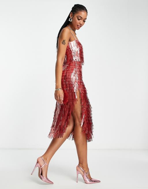ASOS DESIGN – Transparentes Midikleid in Rosa mit Scherben-Details und transparenter Taille