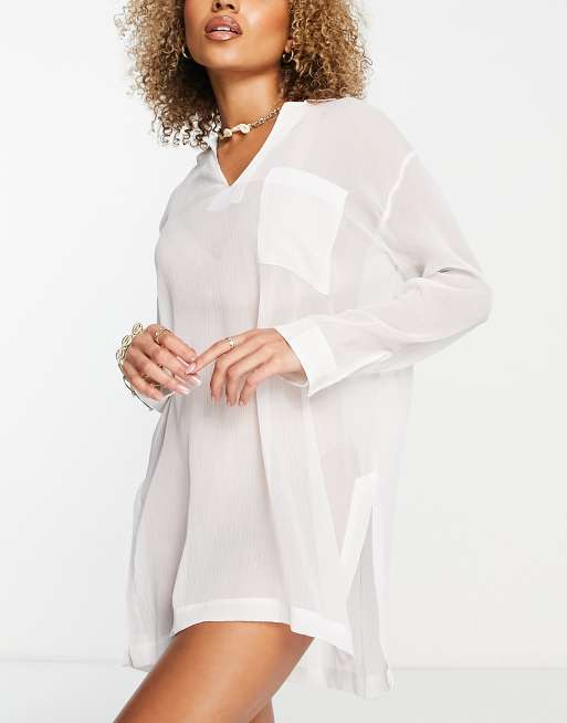 ASOS DESIGN – Transparentes Strandhemd in Weiß zum Überziehen mit Brusttasche