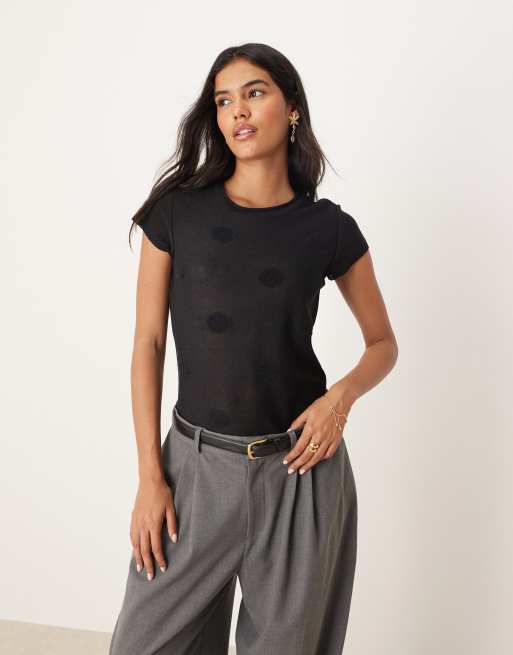 ASOS DESIGN – Transparentes Strickoberteil in Schwarz mit Punktemuster und Flügelärmeln