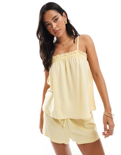 ASOS DESIGN – Trapezförmiges Camisole-Top aus Leinenmix in Buttermilchgelb