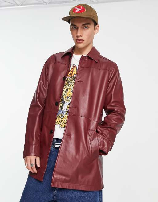 ASOS DESIGN – Trenchcoat aus echtem Leder in Burgunderrot