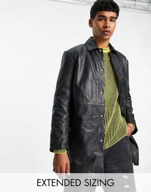 ASOS DESIGN – Trenchcoat aus echtem Leder in Schwarz