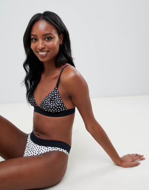 ASOS DESIGN – Triangel-BH und Tanga mit Herz-Print in Monochrom
