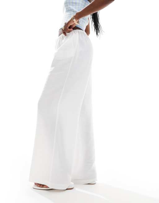 ASOS DESIGN – Twill-Hose in Elfenbein mit Tunnelzug und weitem Bein