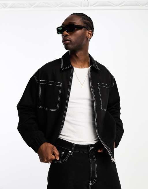 ASOS DESIGN – Übergroße Harrington-Jacke in Schwarz mit abgesetzten Ziernähten