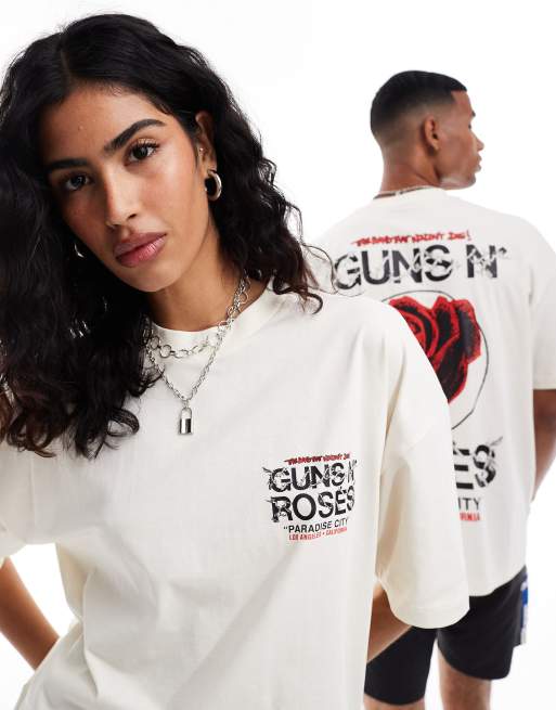 ASOS DESIGN – Übergroßes Band-T-Shirt in Steinbeige mit Unisex-Passform und „Guns N‘ Roses“-Prints