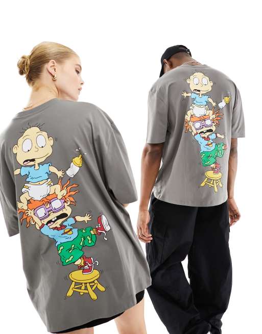 ASOS DESIGN – Übergroßes Unisex-T-Shirt in Anthrazit mit „Rugrats“-Rückenprint