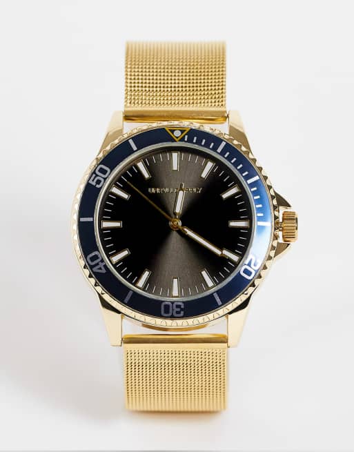ASOS DESIGN – Uhr mit Netzarmband in Gold und Zifferblatt in Blaugrün, 40 mm